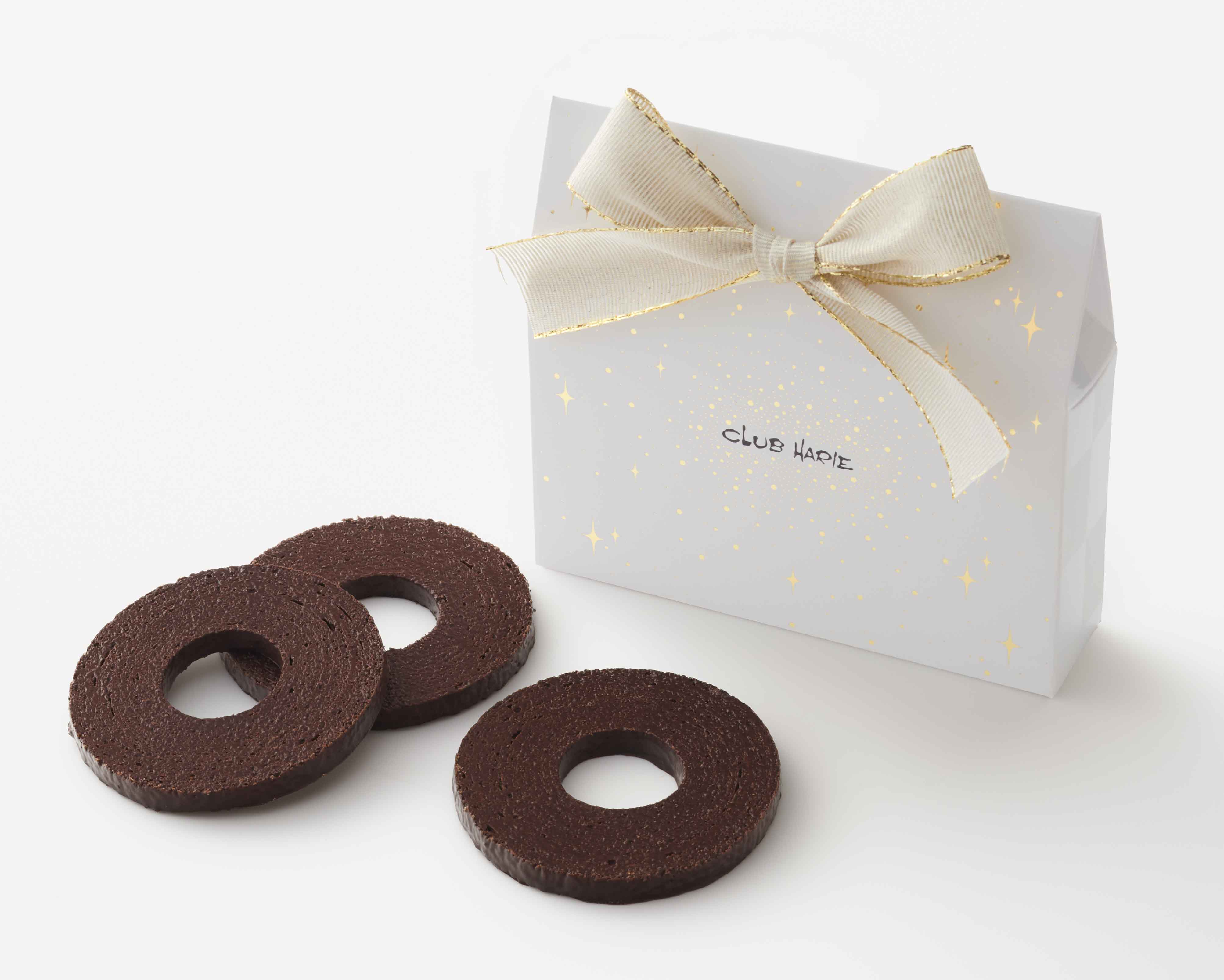 バームクーヘンを使った待望の新定番。専用のレシピで焼き上げたバームクーヘンを熱風で乾燥させ軽い口あたりに。バームクーヘンの風味を大切に、数種類をブレンドしたショコラをほどよく染み込ませました。