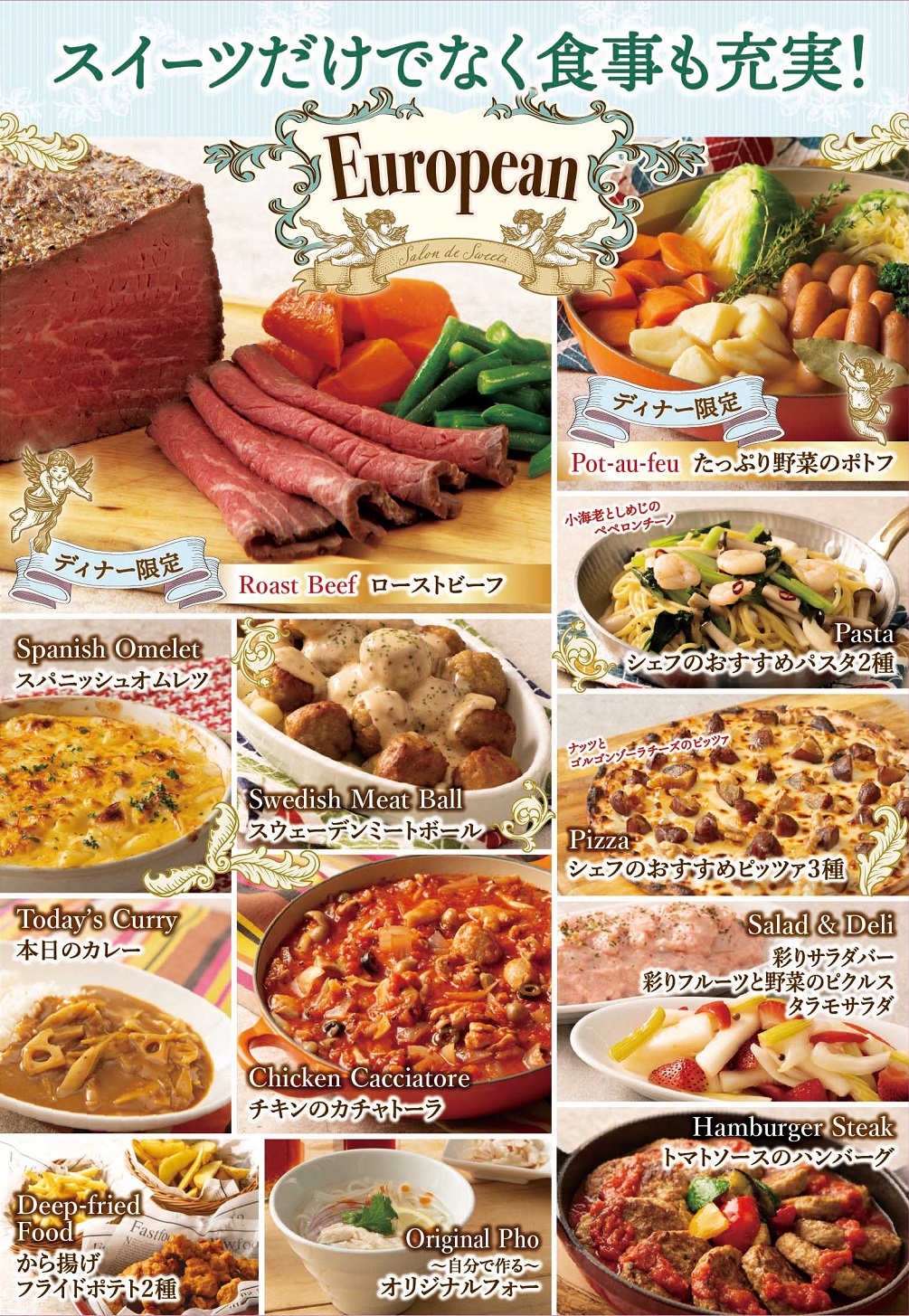 ディナータイム限定メニュー:チキンカチャトーラ、スパニッシュオムレツ、スウェーデンミートボール、ポトフ
