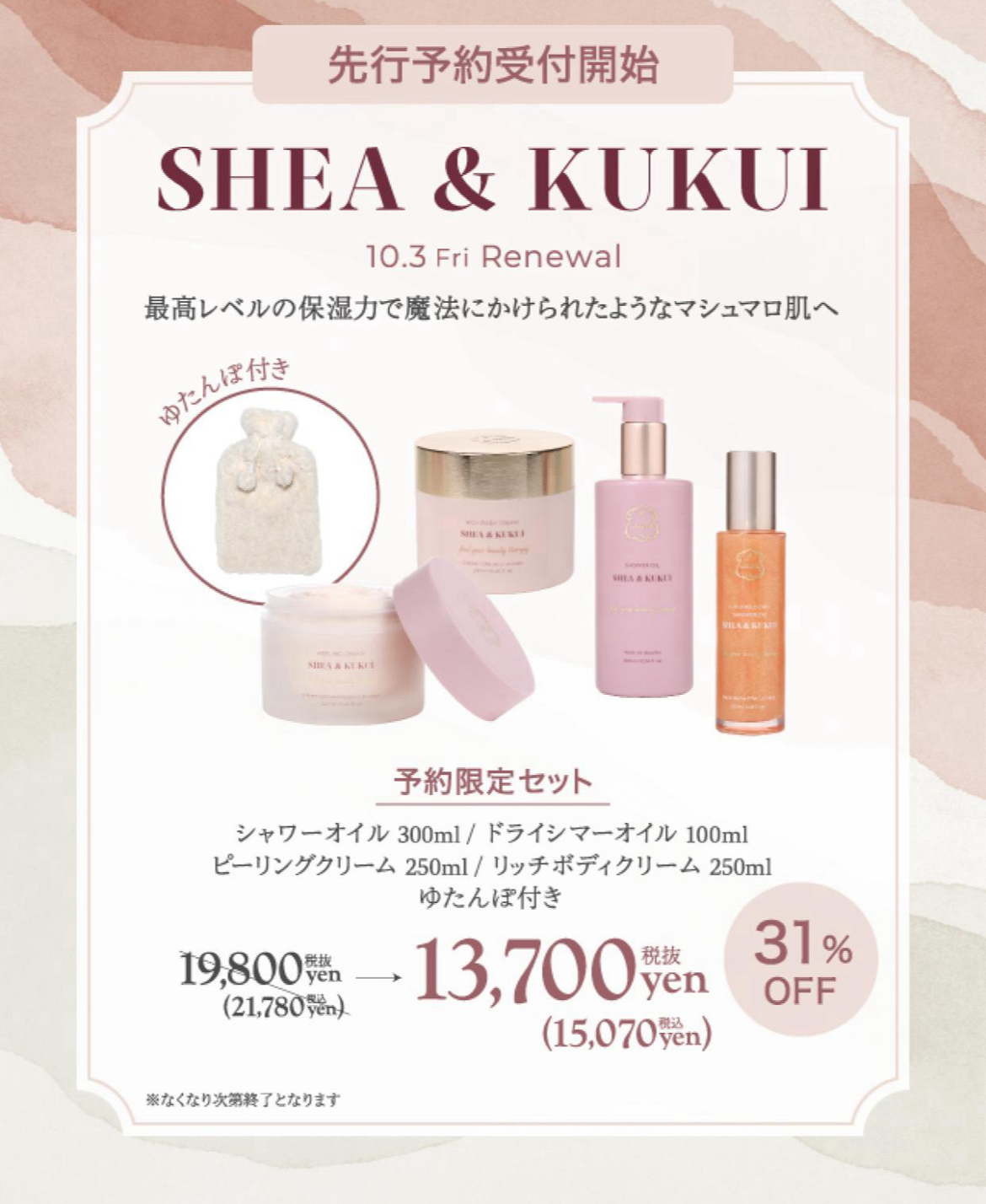 ラグジュアリーなうるおいを纏うシアククイが10/3(金)より新たなパッケージとなり登場いたしました!