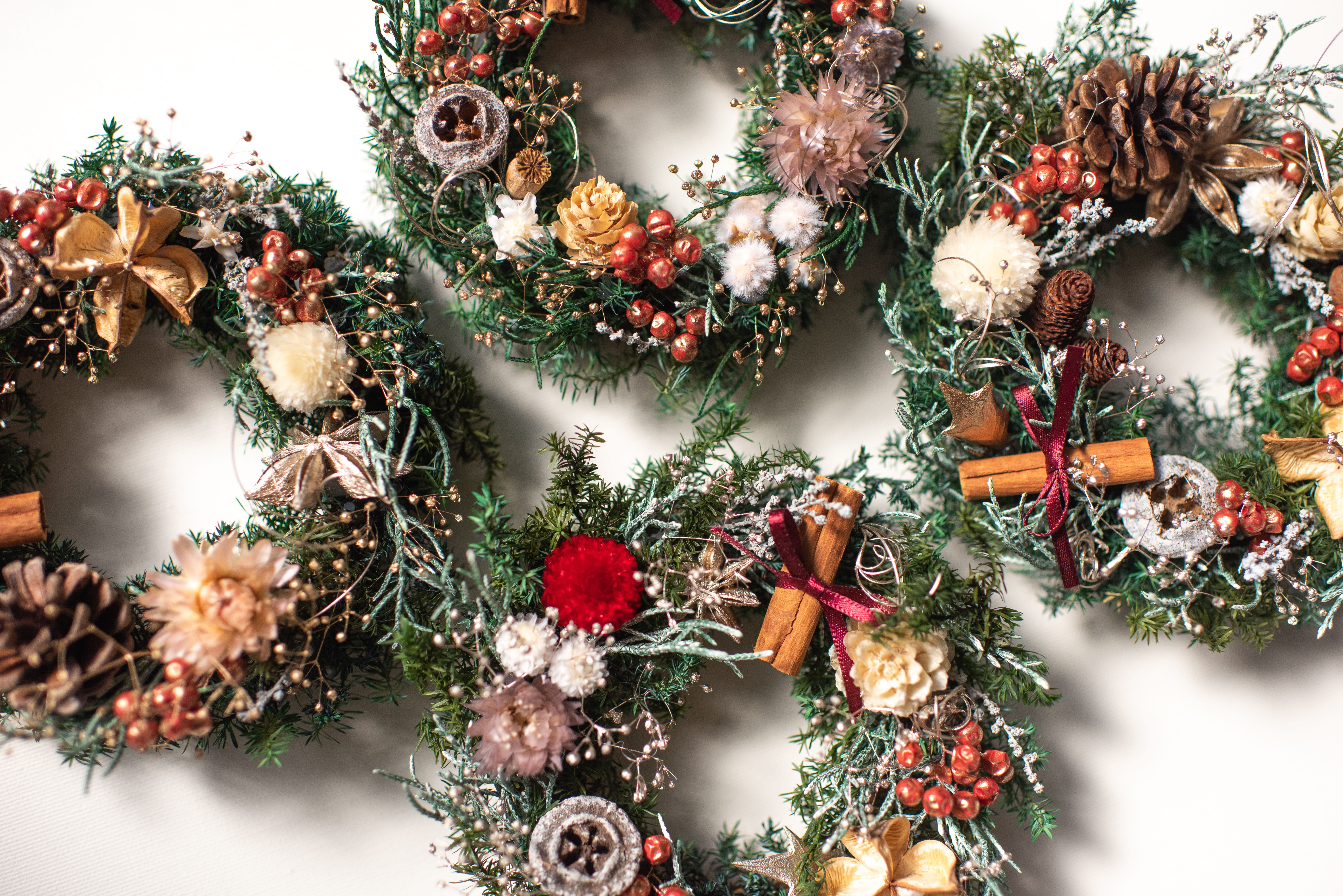 お店にお持ち込みいただければクリスマスっぽさだけなくして通年飾れるリースへのお色直しも承っております。(事前予約推奨◎)