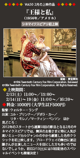 キネマイクスピアリ 舞浜で名画を一年間にわたって、全12本の名作映画を毎月一作品ずつ、特別料金にてリバイバル上映するシリーズ。この機会に、見逃していた映画や懐かしい名作に、スクリーンで出会ってみませんか。2014年からは大学生~幼児の料金がもっとおトクに!若い皆さまの映画との出会いを応援します。 ◆開催期間2015年1月[Vol.37]~2015年12月[Vol.48] 全12回 毎月一作品 「大学生~幼児の料金はさらにおトク! 若い皆さま~~」◆上映時間 朝一回11:00~ ほか ◆料金 1000円(幼児900円)