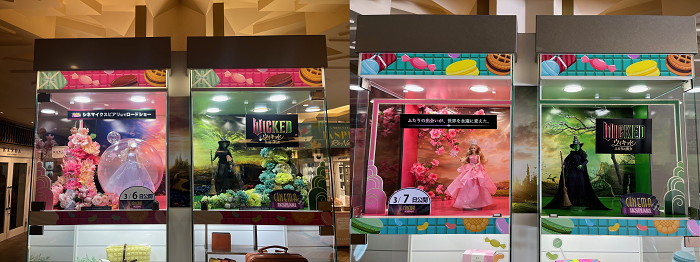 シネマイクスピアリではこの作品を応援すべく、去年も今年もイクスピアリ内のショーケースでミニ装飾を行いました(左が今年、右は昨年)。衣装の細かな違いもあったりして、飾りつけながら初日を待つワクワクは高まる一方。