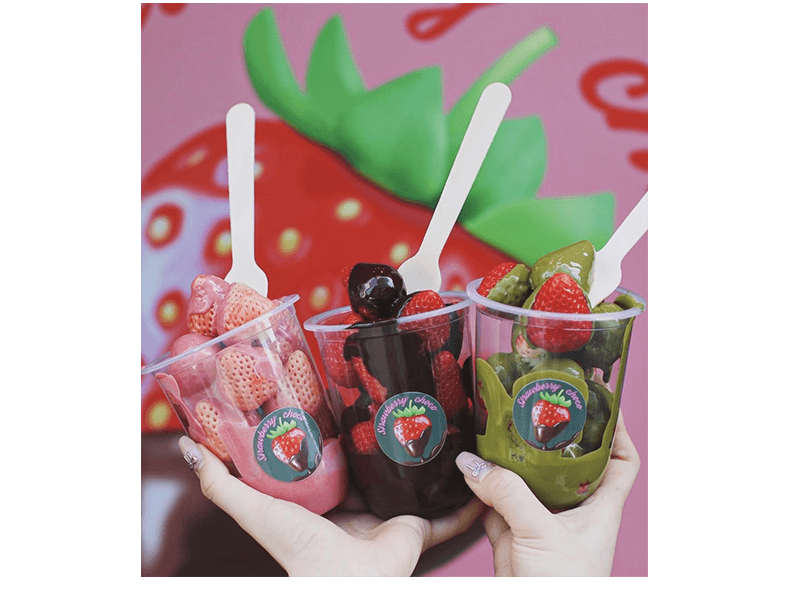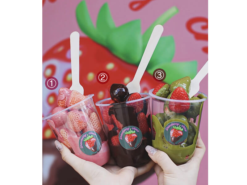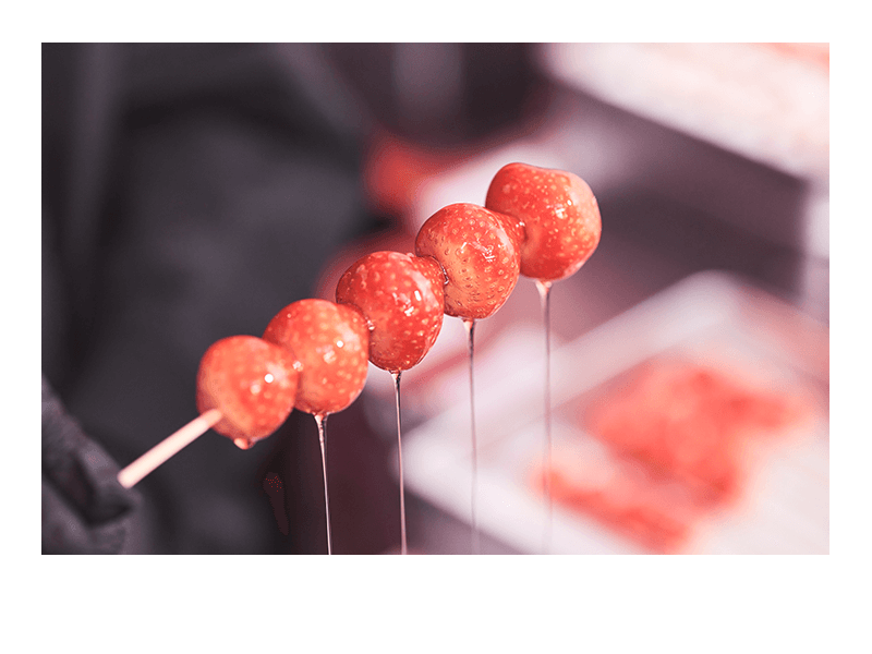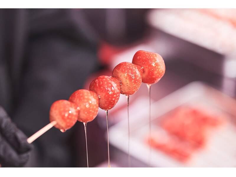 薄つきの飴をいちごにコーティングしパリパリ食感を実現。