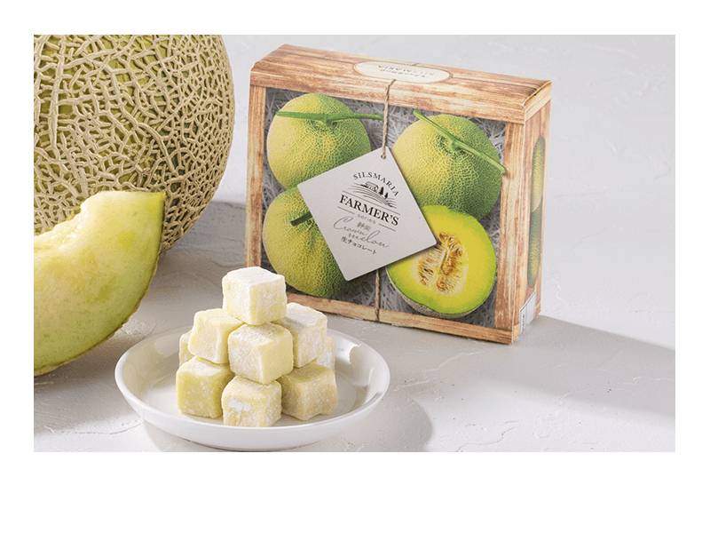 メロンの王様、静岡クラウンメロンと新鮮な北海道産生クリームを使い香り豊かで、ジューシーな生チョコレートに仕上げました。