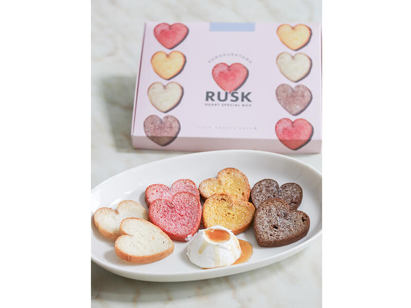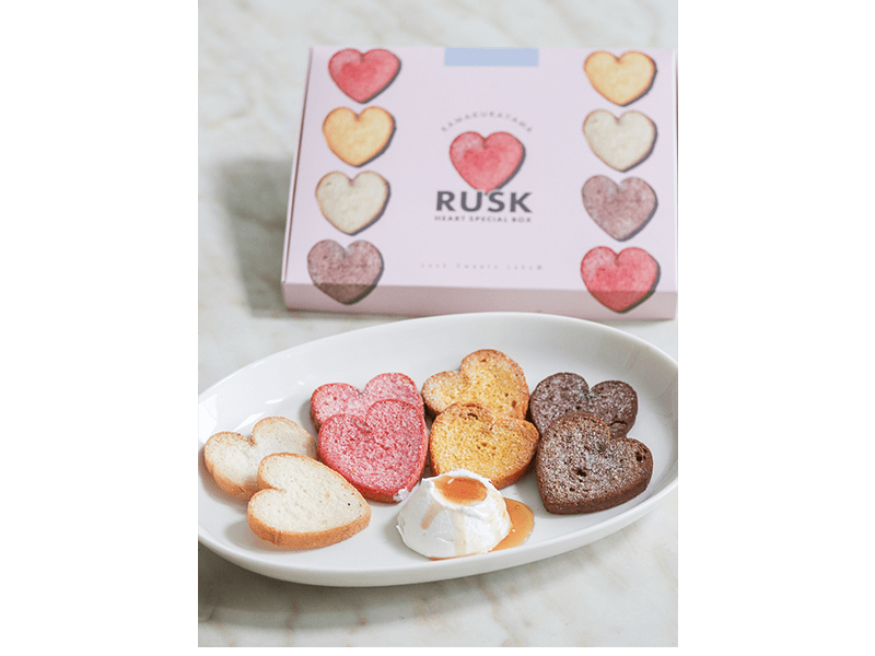 プレーン、ショコラ、ベリー、メープルのハート型ラスク全4種を集めたキュートな詰め合わせボックスが人気!