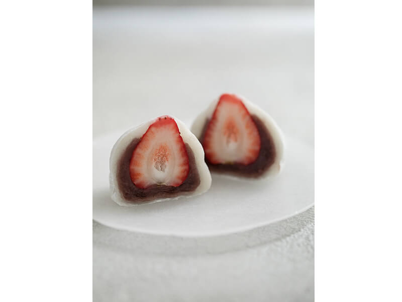 口に入れるとお餅のもちもち食感が広がり、噛めばあまおうのジューシーな甘さが広がります。