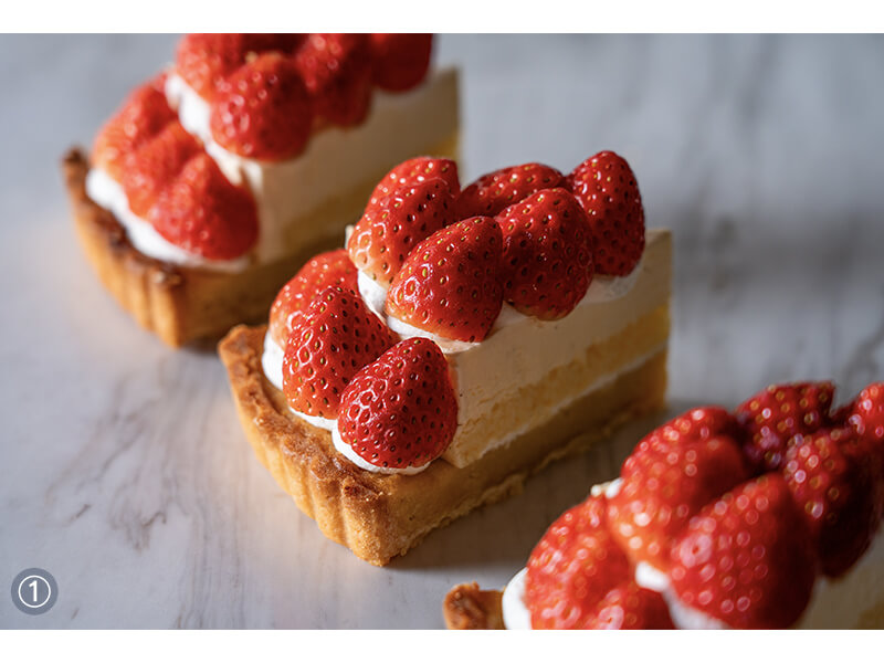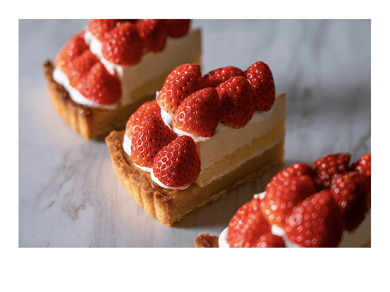 自家製のタルト生地にバニラムースを重ね、トップには完熟ミガキイチゴをたっぷりと敷き詰めました。