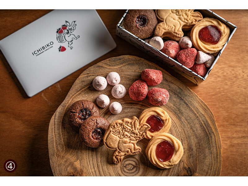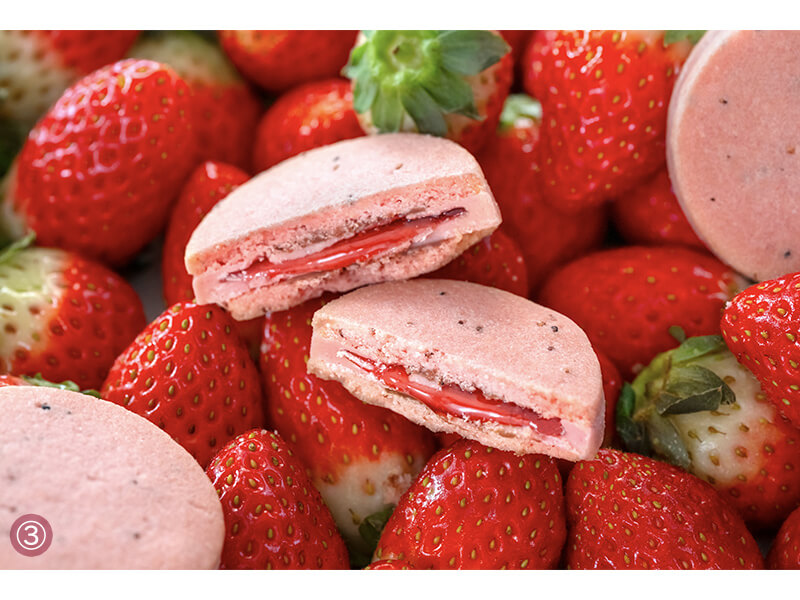 自家製いちごジャムを使ったクッキーや、フリーズドライいちごをまとったいちごチョコ、やさしい口どけのいちごメレンゲなど、 ひとくちごとにいちごの魅力をお楽しみいただけます。