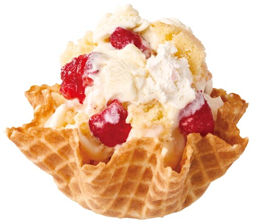 ストロベリーやスポンジケーキのトッピングを、アイスクリームにミックスイン(トッピングの呼称)!ソーダと混ざり合うことで、最後の一口まで味が変化する【飲むクリエーション】を体験いただけます。