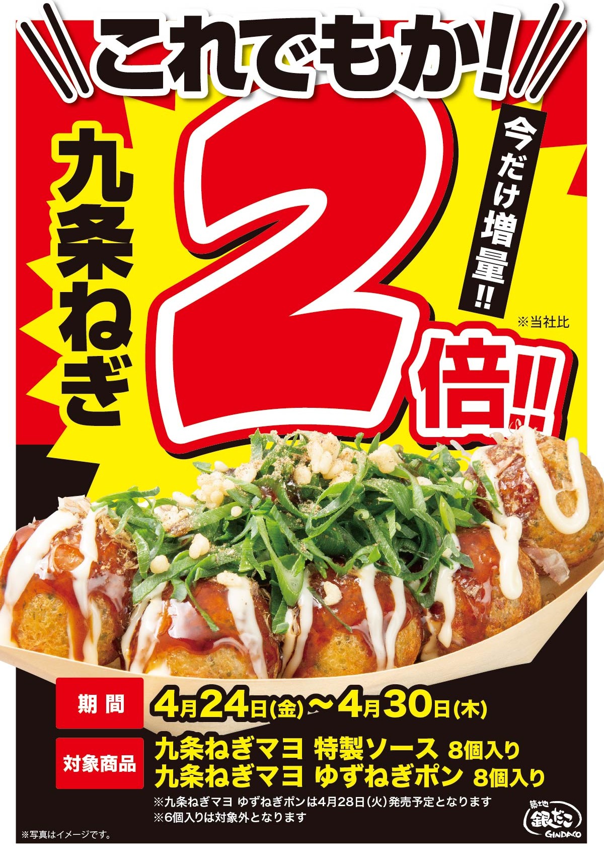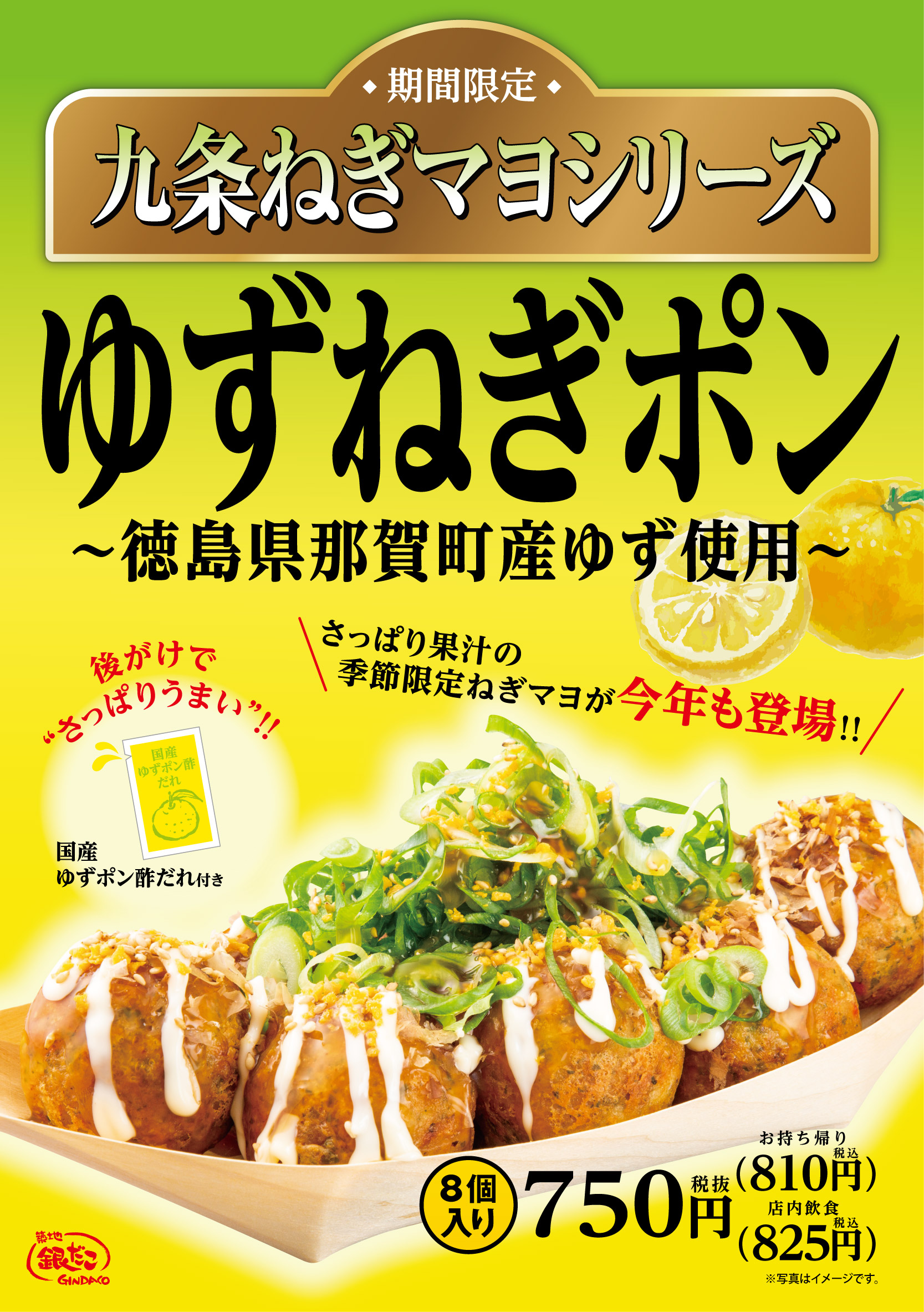 2026年4月28日(火)より、全国の築地銀だこ店舗(一部店舗を除く)にて、大人気の九条ねぎマヨシリーズ 『ゆずねぎポン』 を期間限定で発売いたします。