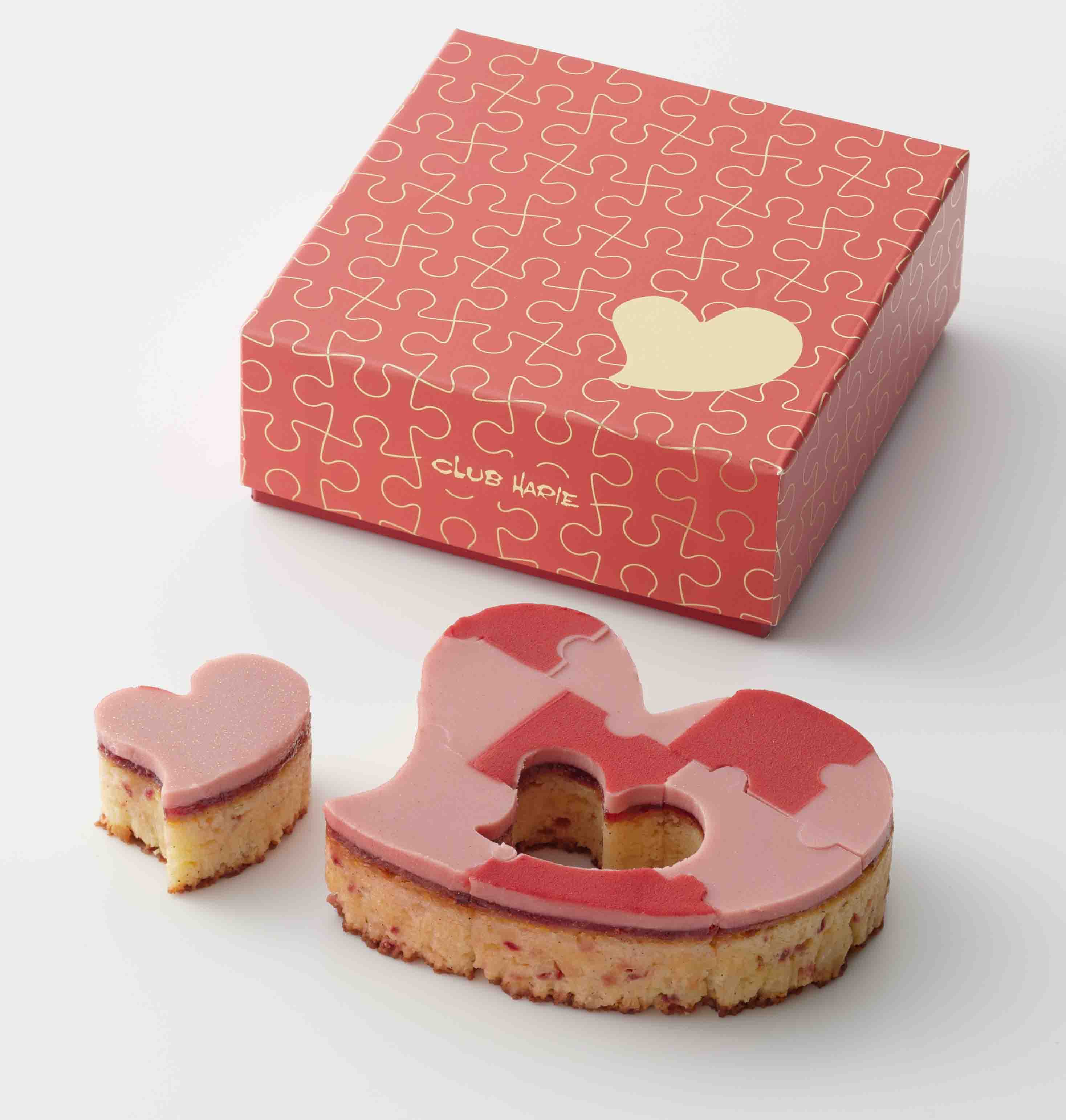 ジューシーいちご:苺のおいしさを閉じ込めたパート・ド・フリュイと、ミルキーでなめらかな苺のチョコレートの二層仕立て。