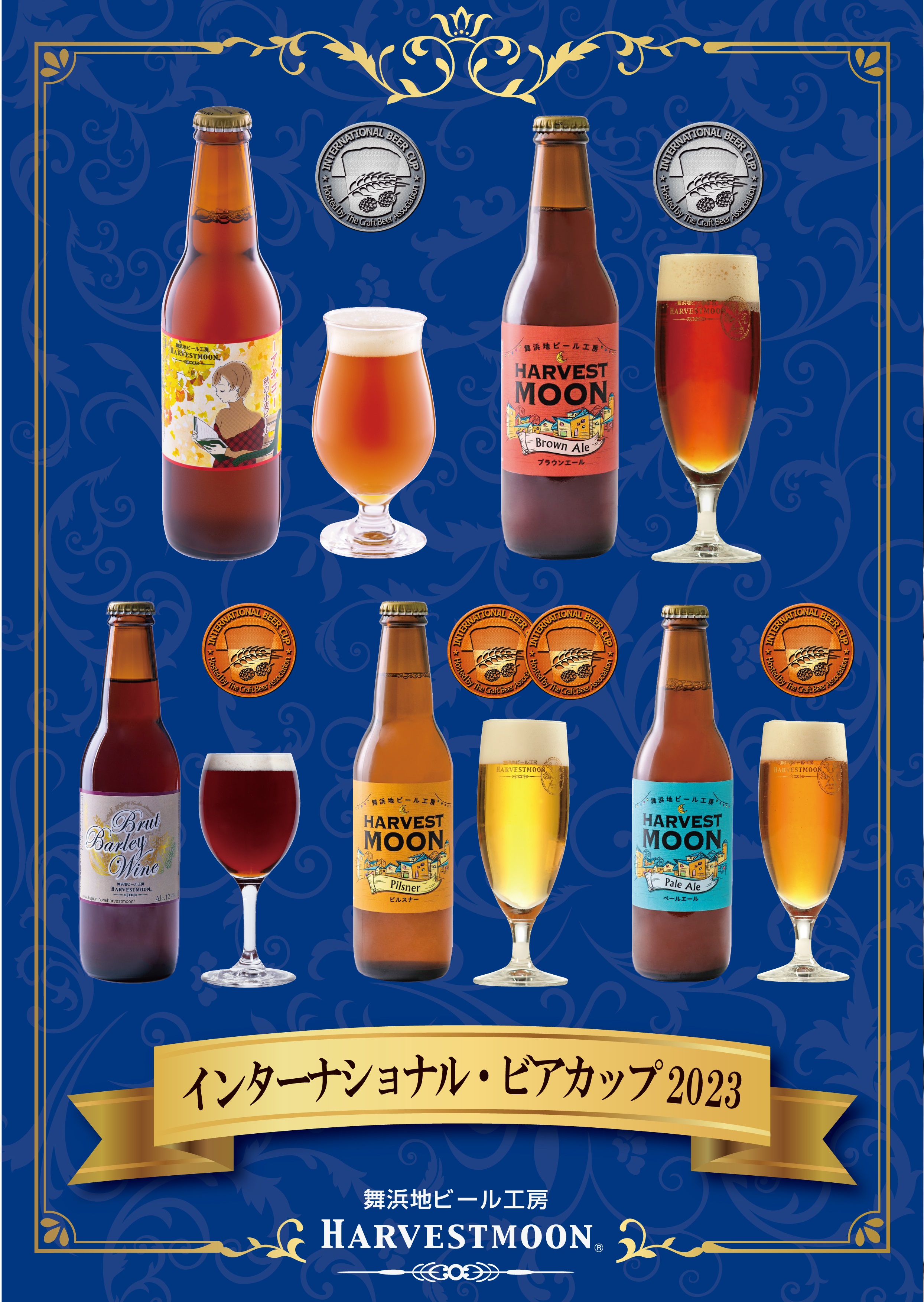 世界五大ビール審査会の一つである「インターナショナル・ビアカップ 2023」において、舞浜地ビール工房「ハーヴェスト・ムーン」の醸造するビールが6個のメダルを受賞しました。