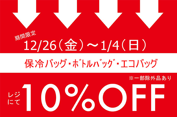 対象の保冷バッグ、ボトルバッグ、エコバッグをお買い上げのお客さまに