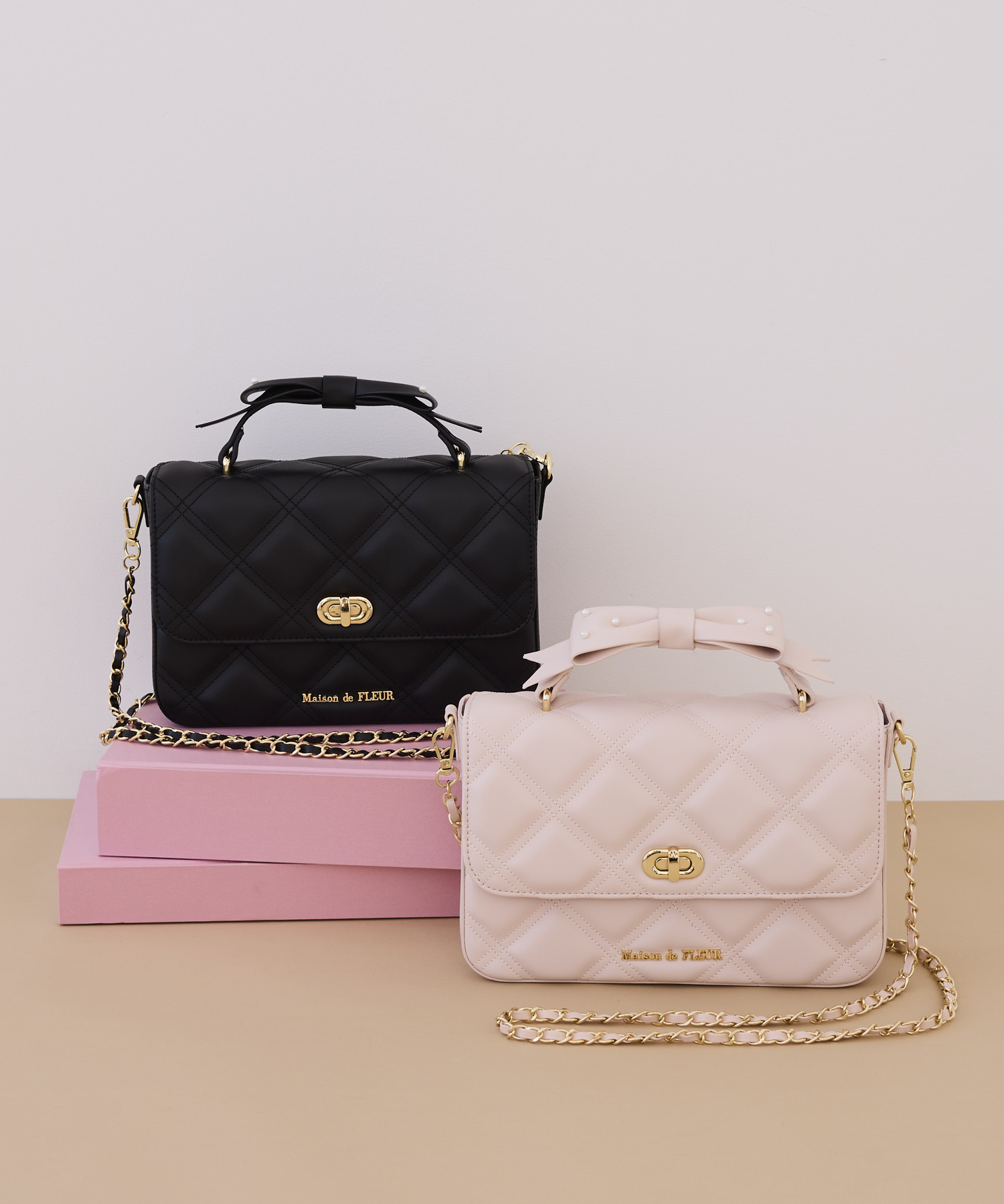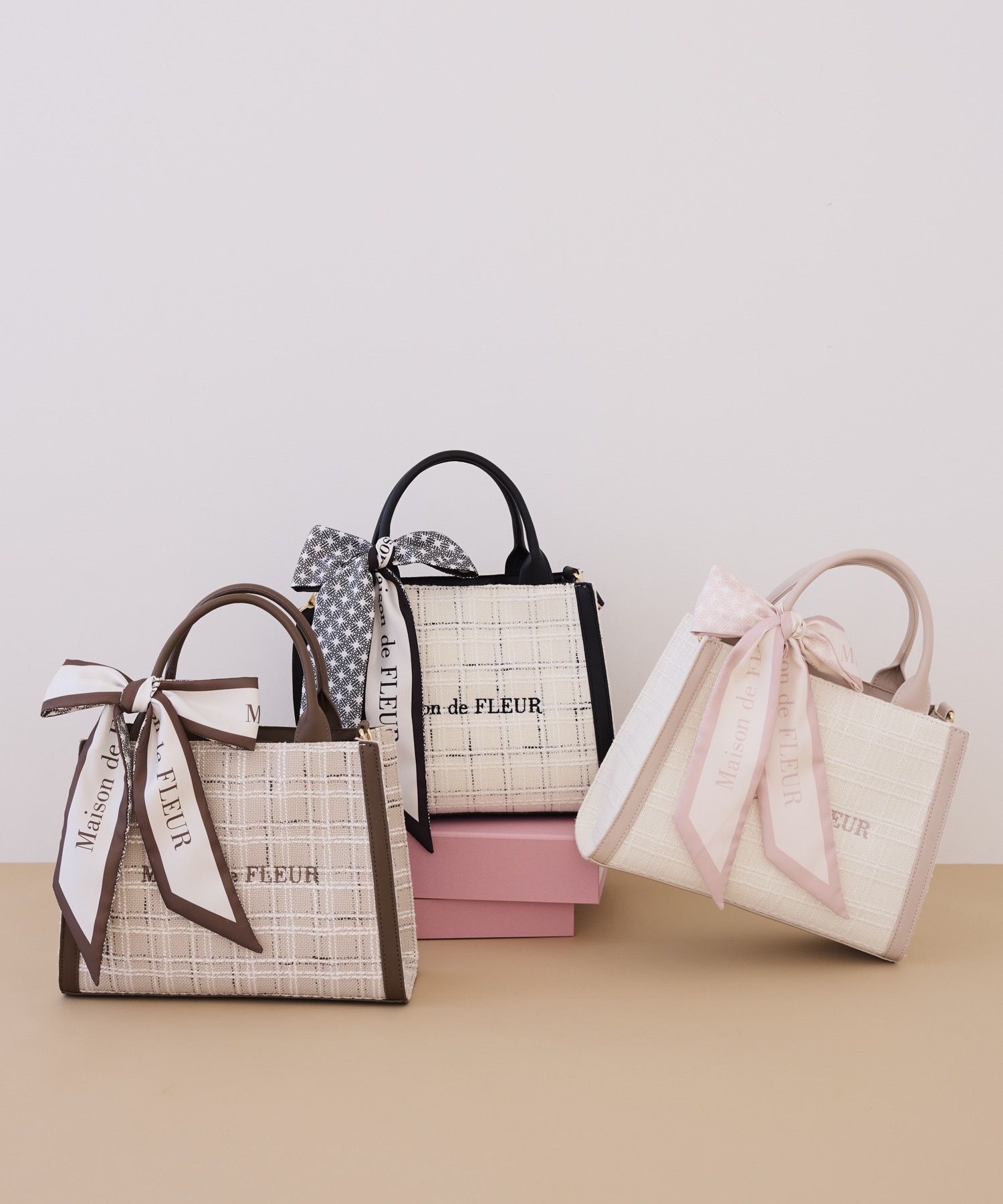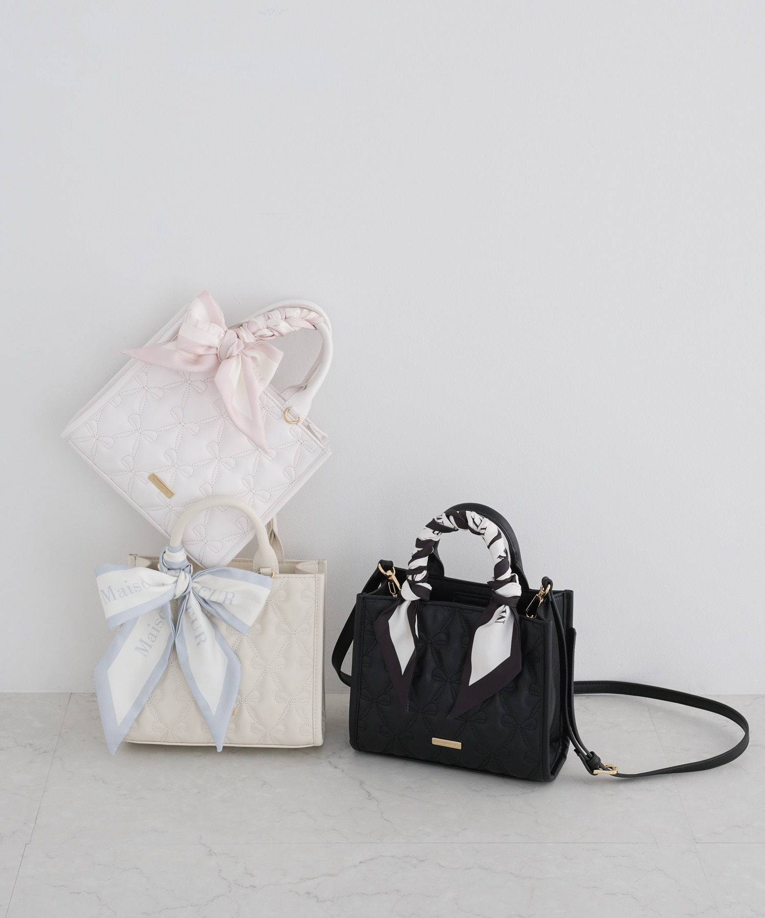 ☑スカーフ付きリボンキルティング2Wayスクエアトート