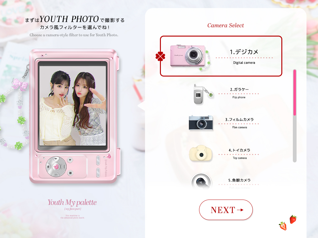 7種類のカメラ風フィルターから選んで可愛く自然体な写真が残せる❤︎